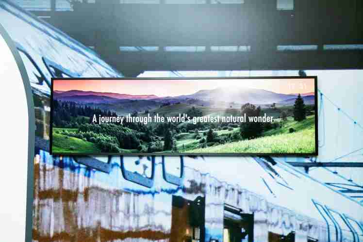 德铁导入达擎 TARTAN 28.6寸面板,,,,着眼 TARTAN 与众不同的尺寸比例,,,能为车厢带来更大的使用效益、、更出色的观赏体验与更多的设计弹性。。(图片来源:德国铁路公司)