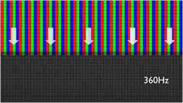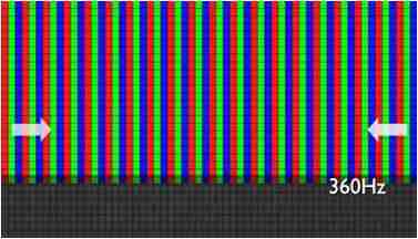 传统液晶驱动是从左到右单向进行,,,在画面更新速度愈来越愈快的情况下,,,位于驱动线路末端的右下角区域,,,,画素的闸极来不及在短时间内获得足够电压,,,无法显示出正确的颜色资讯。。。。